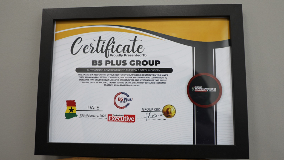 B5 Plus Group has been recognised for its exceptional impact on Ghana’s industrial landscape, receiving the prestigious Outstanding Contribution to the Iron and Steel Industry award at the Ghana Trade and Commerce Conference & Awards 2026.