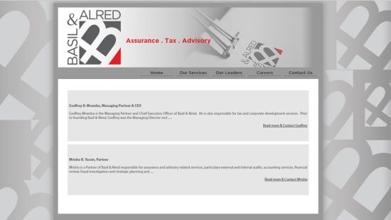Since opening its door in 2011 Basil & Alred has grown to become one of the leading professional services firms operating in Tanzania. Offering full-service assurance, tax and advisory expertise, with a team led by partners of some 40 years cumulative experience in public accounting spearheaded by Godfrey Mramba the Managing Partner and Chief Executive Officer chiefly responsible for tax advisory and corporate development.